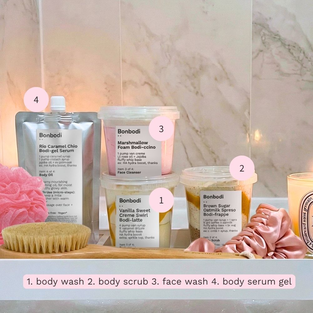 Whipped washes. Sugar scrubs. Melty oils.Little treats for your everything shower.